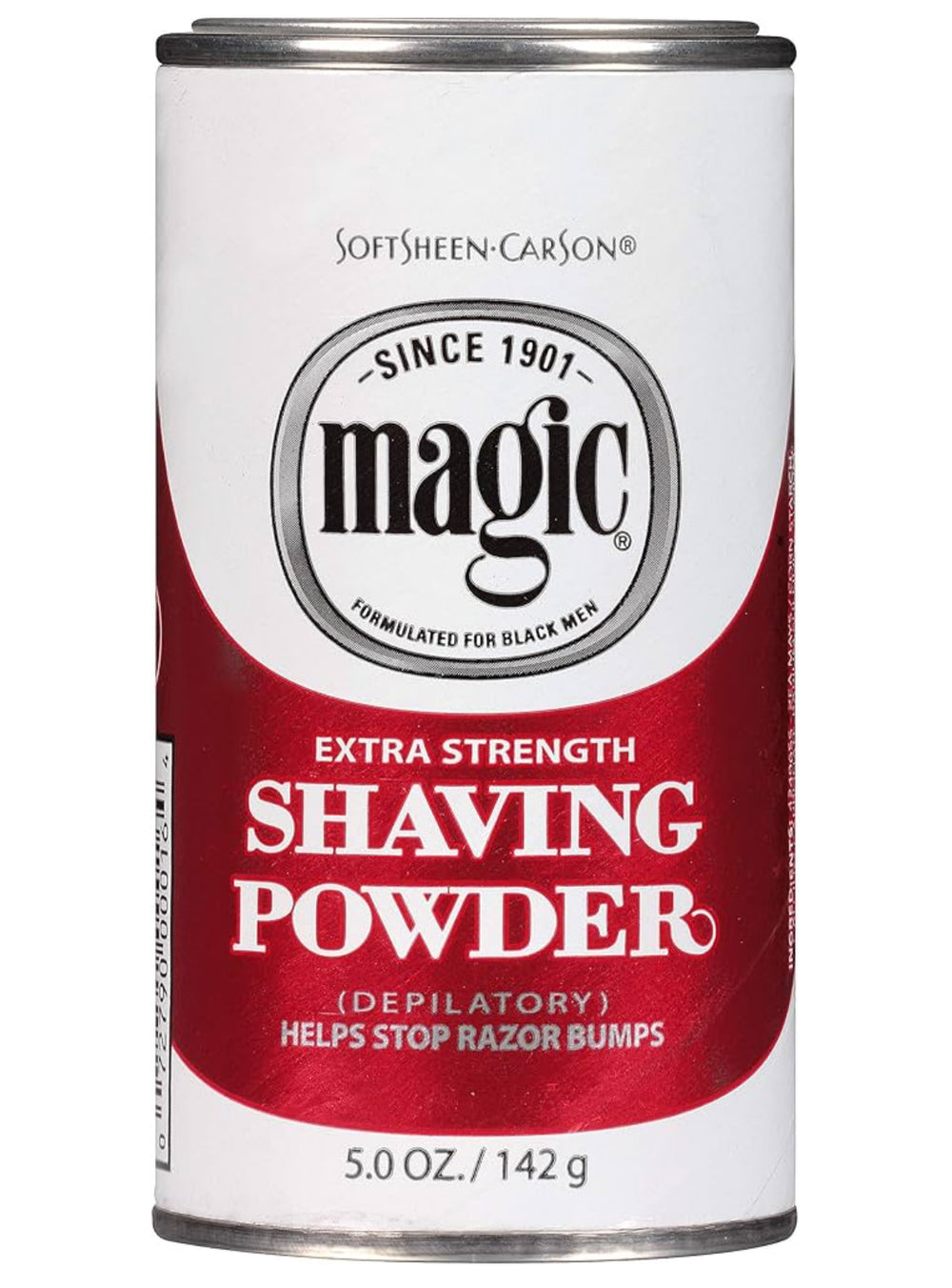 - A razorless shaving powder (depilatory) formulated for black men to help stop razor bumps